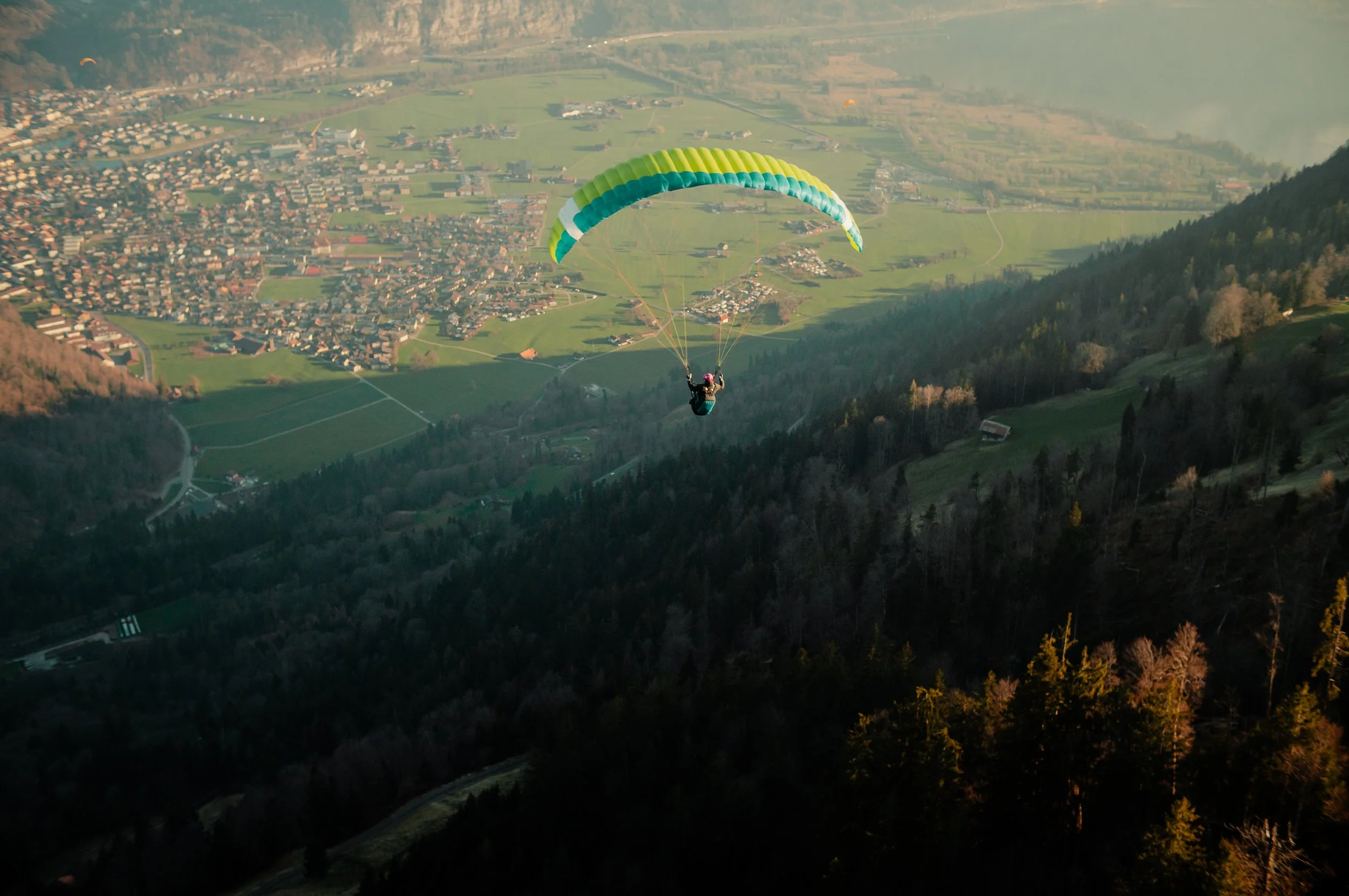 Flugausrüstung (Gleitschirm, Gurtzeug, Notschirm)